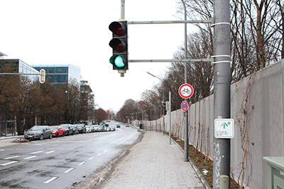 Was von vielen DomagkPark-Anwohnern schon lange gefordert wurde, hat das Kreisverwaltungsreferat nun in die Tat umgesetzt. Fahrradfahrer aus Richtung Alte Heide kommend, werden nach der Autobahnüberquerung nun vom Gehweg auf die Strasse geleitet. Das entspannt die Platzsituation an der Bushaltestelle "Gertrud-Grunow-Strasse" und schafft mehr Sicherheit, sowohl für Fussgänger als auch für Radfahrer.