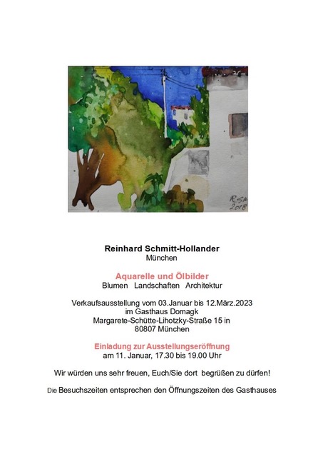 Seit dem 3.1.2023 haben wir an den Wänden des Gasthauses wieder eine neue Ausstellung mit Bildern von Reinhard Schmitt-Hollander.