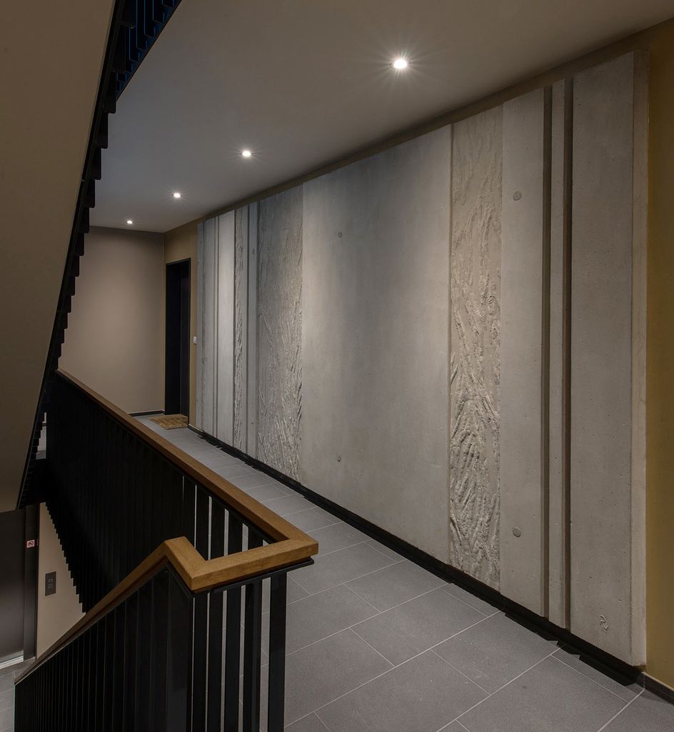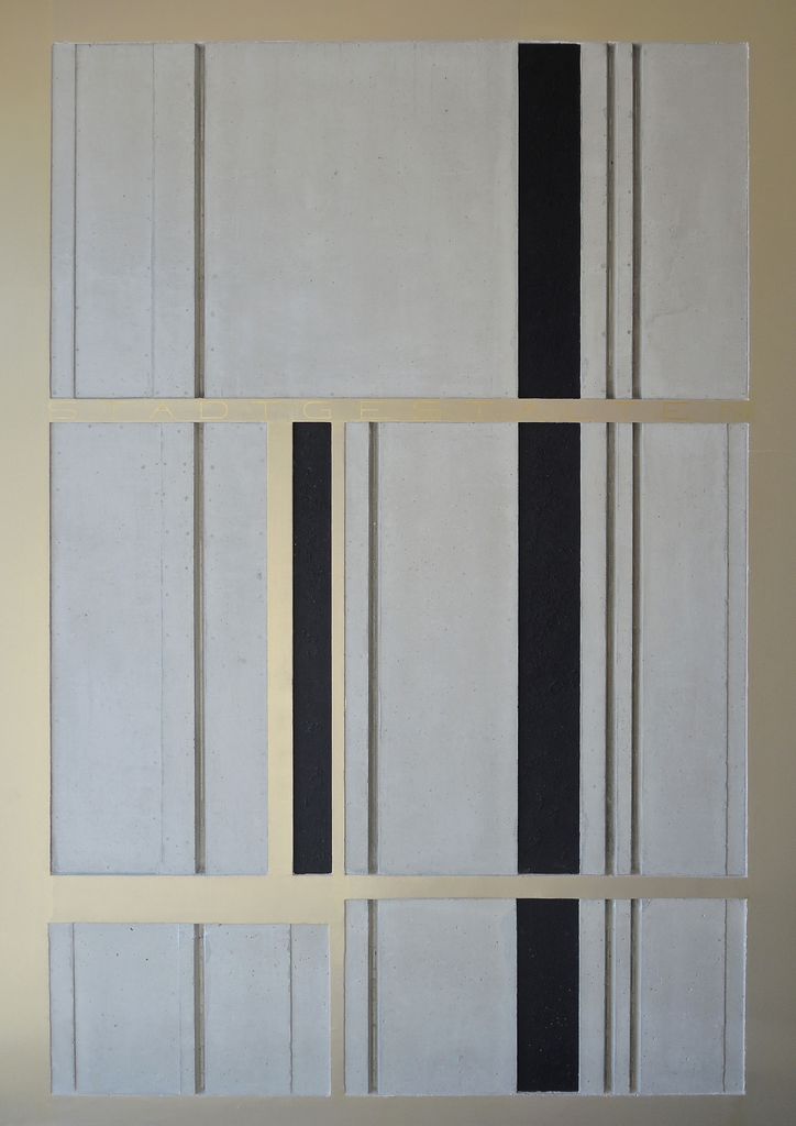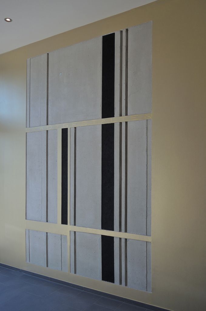 Gemeinsam mit den Architekten wurde zunächst ein übergeordnetes Konzept zu Farbgebung, Proportionen und Platzierung der Betonreliefs entwickelt. Die Kunstwerke sollten einerseits zurückhaltend aber doch präsent sein. Im Sinne einer "Partitur" erfassen sie das gesamte Treppenhaus nebst Zugängen. Als Materialien wurden Holz und Beton - die Hauptbaustoffe des Gebäudes - gewählt. Die konkrete Umsetzung erfolgte in Form von mehreren Betonreliefs, die im Zuge des Baufortschritts in Ortbeton ausgeführt wurden.