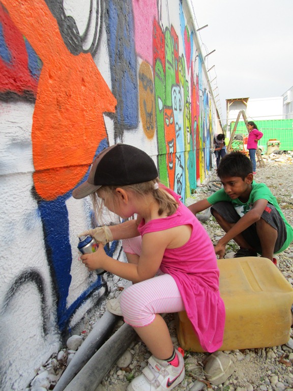 Beim Projekt des Nachbarschaftstreffs Domagkparks zeigten die Kinder, unter Anleitung des Graffiti-Künstlers Marco Ziegler, wie auch miteinander Nachbarschaft gestaltet werden kann. Denn dies ist die zentrale Aufgabe des Nachbarschaftstreffs. Im Treff können sich Nachbarn kennen lernen, in Interessengruppen zusammen finden, Freizeit miteinander verbringen, Freundschaften knüpfen, sich gegenseitig unterstützen und aktiv an der Gestaltung ihrer Nachbarschaft teilhaben.