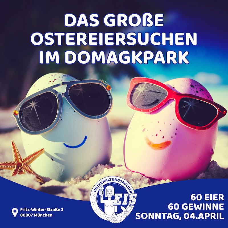 Am Sonntag, 04.APRIL verstecken wir von der UNTERHALTUNGSREEDEREIS insgesamt 60 Ostereier für Euch im gesamten Domagkpark!