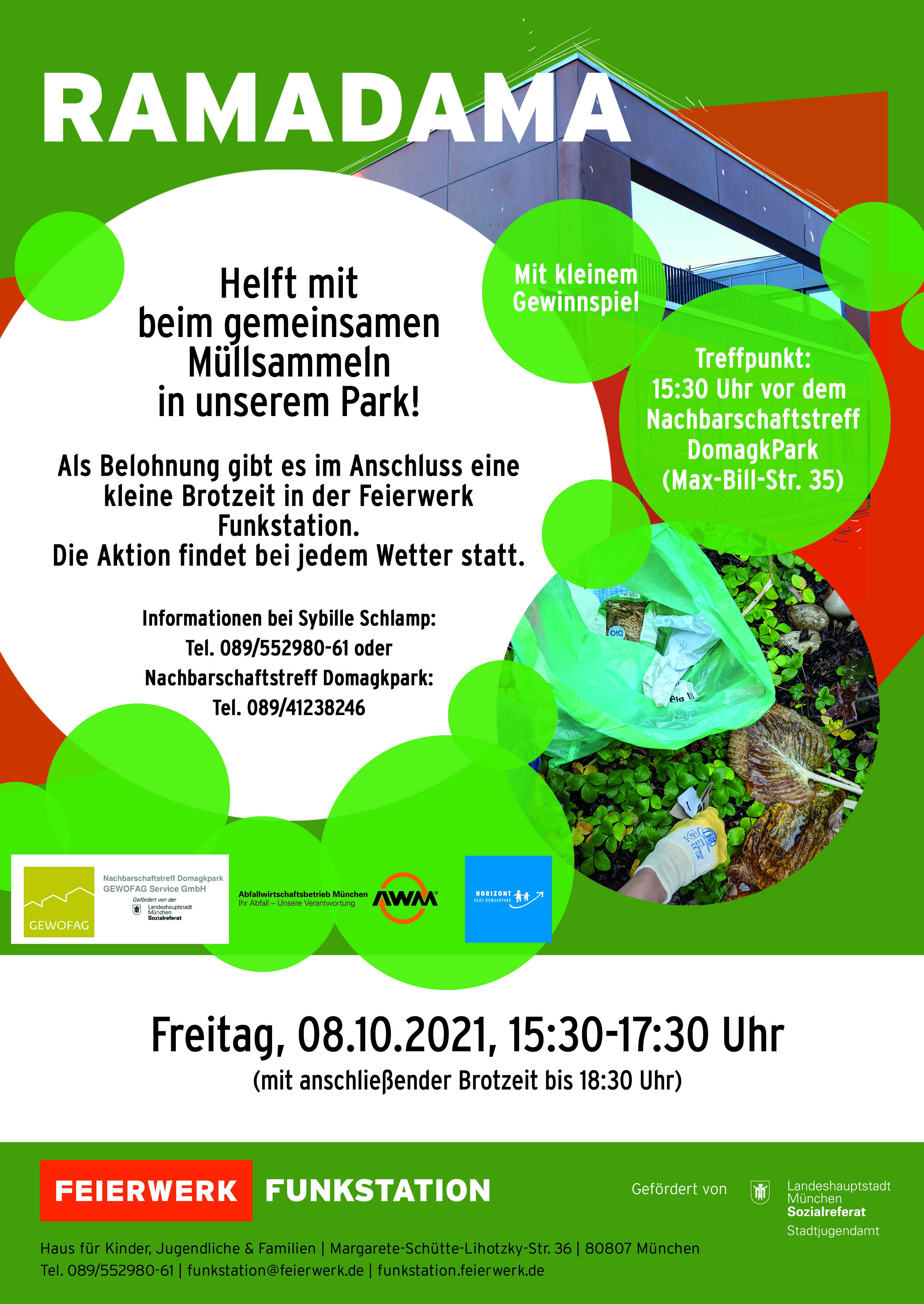 Es ist schon schöne Tradition: Nachbarschaftstreff, HORIZONT-Haus und Funkstation tun sich zusammen und rufen auf zum Ramadama, zum gemeinsamen Müllsammeln. Wir packen zusammen an, damit unser Park so schön und sauber bleibt, wie er ist.