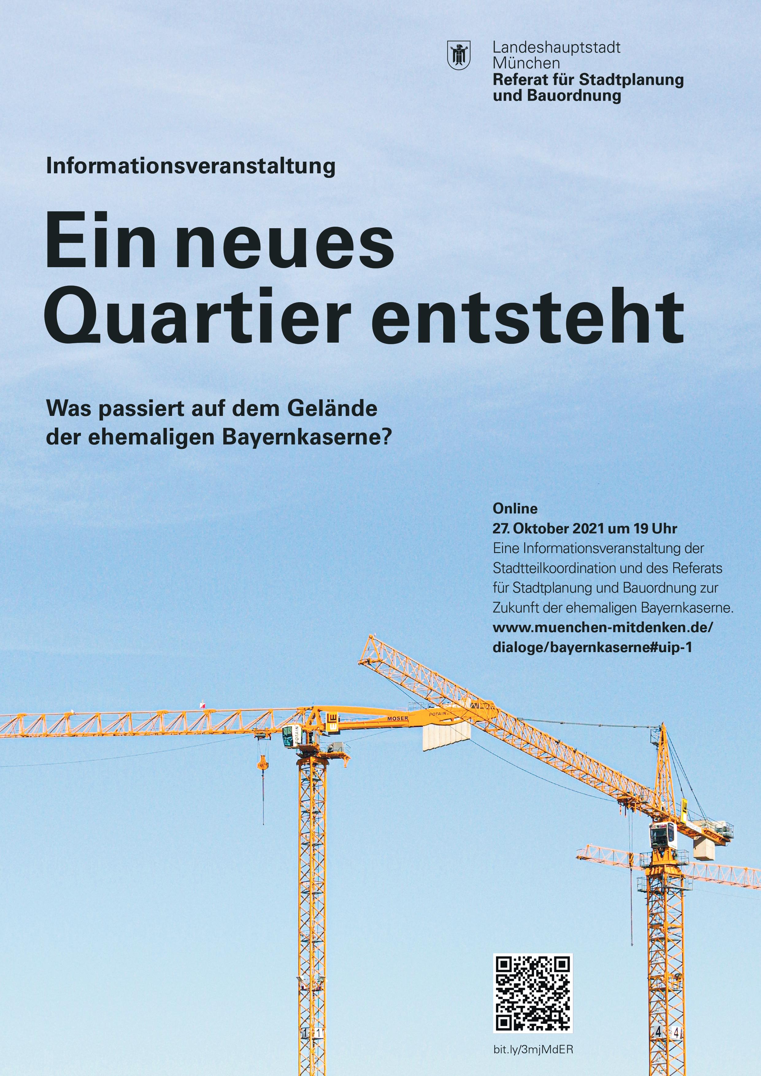 Am Mittwoch, den 27.10.2021, können Sie ab 19.00 Uhr unter folgendem Link online an der Bürgerinformationsveranstaltung zur Bebauung der Bayernkaserne teilnehmen: