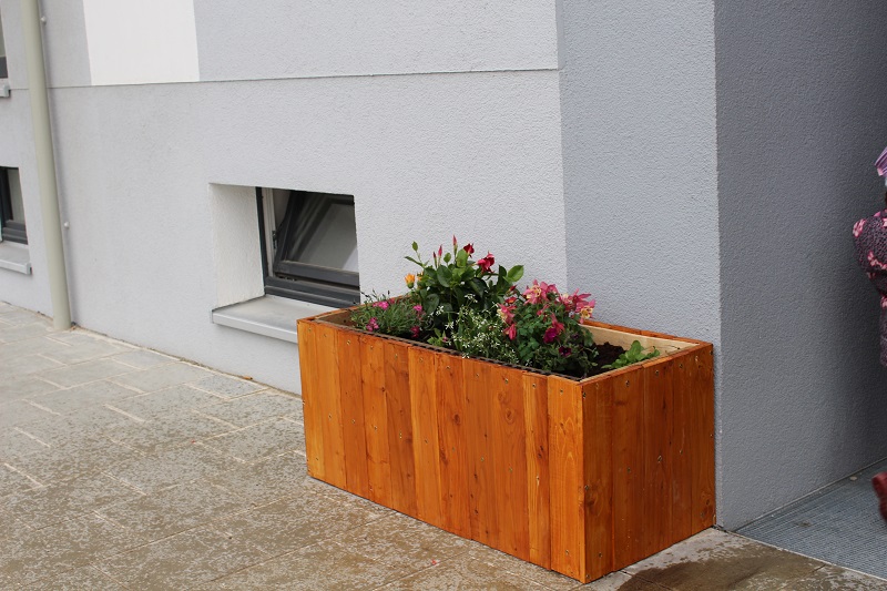 Die fertigen Kästen wurden anschließend noch mit einer bunten Pracht an Blumen bepflanzt und flankieren nun den Eingang des Nachbarschaftstreffs. Besonders gefreut hat man sich über spontane Spenden in Form von Blumen und natürlich über die positive Rückmeldung andere Nachbarn.