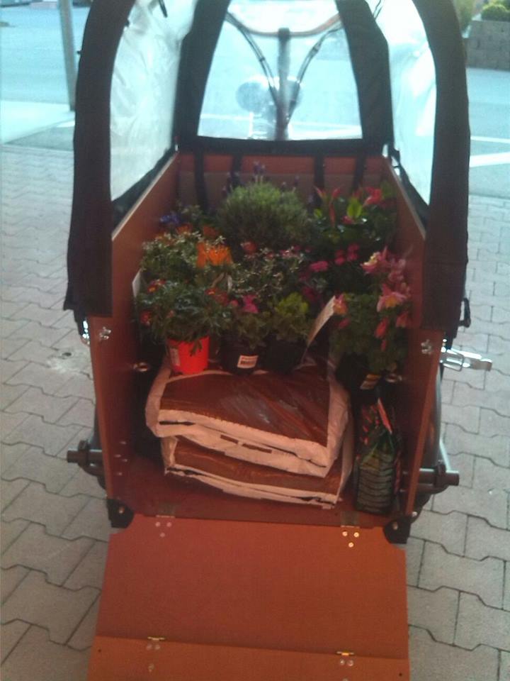 Es stand eine Menge an Arbeit auf dem Programm. Die Paletten mussten zerlegt, das alte und neue Holz zugesägt und die Hölzer für die Außenverkleidung mit einem 3fachen Anstrich lasiert werden. Die Pflanzen und die Erde wurden mit dem Treff eigenen Lastenrad besorgt, das demnächst von allen Nachbarinnen und Nachbarn im Domagkpark ausgeliehen werden kann.