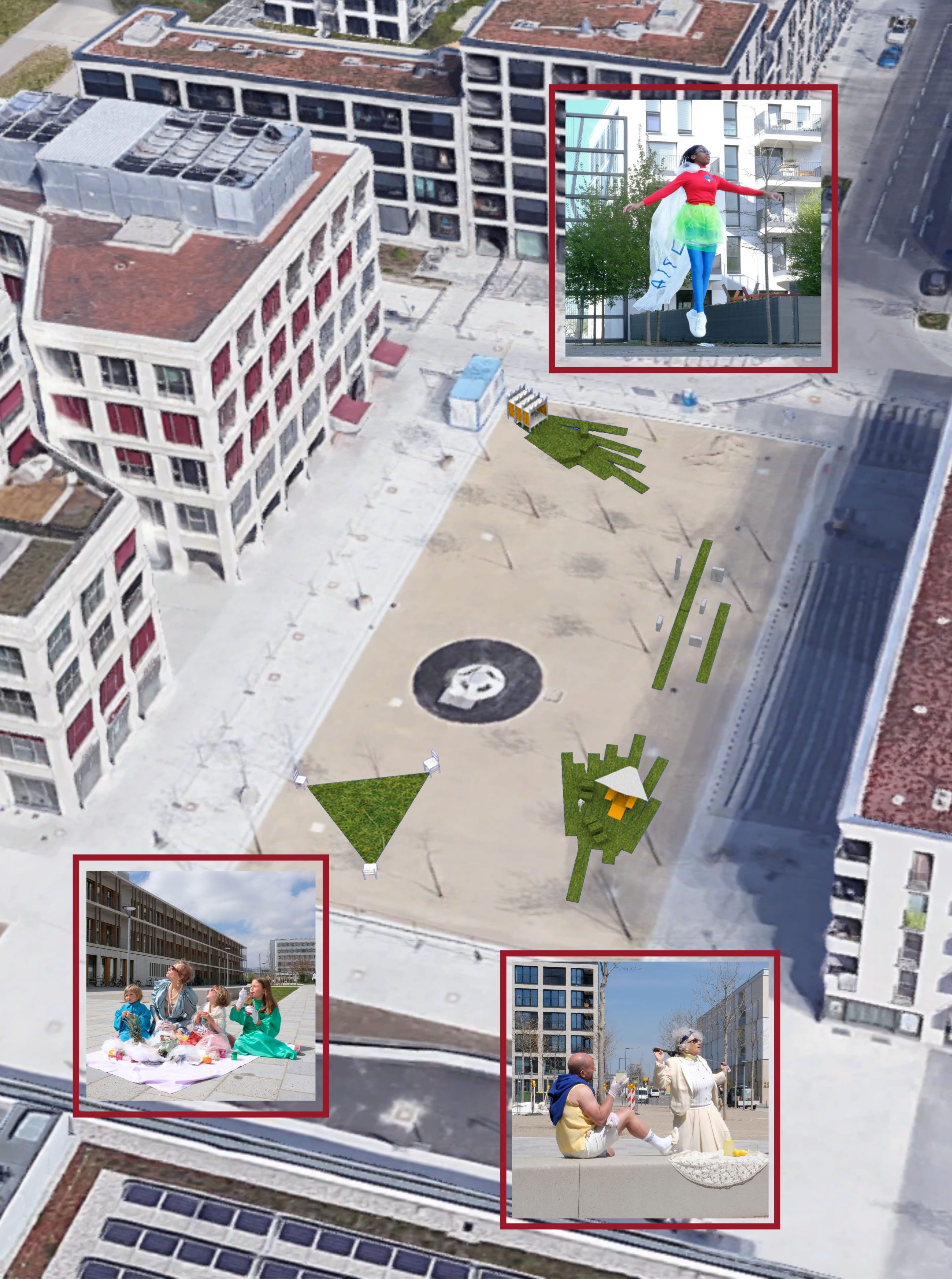 Thema der Theaterinstallation ist das Leben in der Großstadt anhand unseres Quartiers, dem Domagkpark.